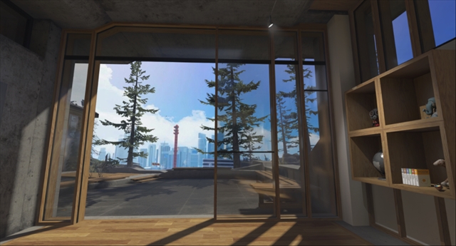 周辺を見回し、コンピューターが設置された場所に視点が行くと空間のデザインが変化します。